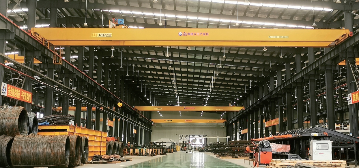 海建(万宁)建筑产业现代化基地项目占地 130 亩,采用高度机械化、自动化、信息化的生产设备,并应用 ERP 数字化系统平台集中管理。主要设备包括两套 HZN120 型混凝土搅拌站,三条 PC 流水生产线以及钢筋加工生产中心,同时配套设有集中供气系统、模具加工中心及蒸气锅炉。