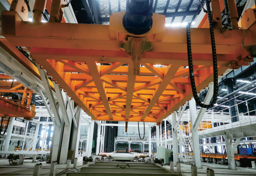 项目采用与上汽研砼合作研发的定制化生产线,采用德国索玛 Sommer 公司的核心部件,自动化水平高、生产效率快、设备性能,可达5分钟/模台的生产节拍。同时定制采购了一批不锈钢模台,可以生产清水混凝土产品及带饰面 GRC 构件产品。